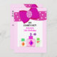 Um convite de festas de spa na moda. Frascos e frascos de perfume em cores bonito. Um bonito arco rosa no topo do convite. Personalize com todas as informações de sua parte conforme desejado.