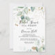 Este convite de festas de chá de chá de panela de eucalipto dourado é perfeito para um chá de casamento rústico. Este design artístico apresenta a aquarela desenhada à mão, ouro e folhagem verde, inspirando beleza natural.