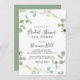 Este convite de festas de chá de chá de panela de eucalipto, confete de ouro, é perfeito para um chá de casamento rústico. O design apresenta uma folhagem verde de aqualyptus com dourado confetti.