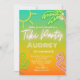Este convite é inspirado pelos Sinais Neon com diferentes cores tropicais usados no fundo para dar a sensação divertida e legal das vibrações tropicais