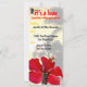 Convites coloridos e divertidos de luau, em forma única e longa, com um toque dos trópicos, apresentando uma autêntica madeira havaiana tiki e palmeiras ao longo da praia.