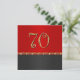 Convites customizáveis para marcos miliários principais e de "eventos comemorativos alguma idade", recolhimentos, noites fundraising, ocasiões especiais e partidos. PROJETE a combinação bonita do ~ A de brilhante, cetim do falso, vermelho e o fundo preto do carvão vegetal dividido por uma beira à moda do ouro, tem-lhe um numeral dourado 70 (setenta), que tenha gravada, o olhar 3d. PERSONALIZE-O que o ~ adiciona seu próprio fraseio; e mude a cor, o estilo e o tamanho da pia batismal para fazê-la original. A imagem de fundo pode ser suprimida e uma cor de sua escolha pessoal selecionada, e o numeral ser suprimida para adicionar alguma idade que você exigir. Use "personalizam-no" botão para adicionar modelos. IDEAL PARA o ~ algum na moda e da "evento elegante 50th festa de aniversário", função, recolhimento ou banquete incorporado. Se sua empresa está comemorando um ano do marco miliário no negócio, a seguir este design formal e exclusivo é ideal. ARMAZENE o ~ http://www.zazzle.com/mensgifts* do ENDEREÇO