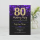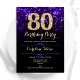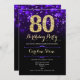 convite de aniversário 80. Design púrpura elegante com ouro brilhante. Apresenta na moda diamante, luzes e fontes de script. Homens ou mulheres convidam no dia. Perfeito para uma festa de aniversário adulta na moda. Personalize com seus próprios detalhes. Envie-me uma mensagem se precisar de mais personalização. Impressos convites Zazzle ou modelo de impressão digital instantânea para download.