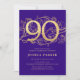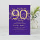 Convite de aniversário de ouro roxo e elegante. Design feminina moderna personalizável, com sotaques botânicos rosas e ouro brilhante falso. Simples cartão de convite floral perfeito para uma comemoração de um na moda. Personalize com seus próprios detalhes. Impressos convites Zazzle ou modelo de impressão digital instantânea para download.