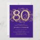 Convite de aniversário de ouro roxo e elegante. Design feminina moderna personalizável, com sotaques botânicos rosas e ouro brilhante falso. Simples cartão de convite floral perfeito para uma comemoração de um na moda. Personalize com seus próprios detalhes. Impressos convites Zazzle ou modelo de impressão digital instantânea para download.