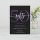 Moderno e chic, este convite de aniversário combina preto clássico e branco com sotaques de roxo brilhante. É um design mínimo é um design simples e divertido para celebrar o aniversário do marco. Criado pela imprensa simplesmente de farmácia.