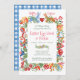 Um convite único e caprichoso para sua Páscoa Brunch, Picnic, Caça de Ovos ou junte-se! Motifs coloridos e alegres do estilo popular recebem primavera com flores, folhas, pássaros, borboletas e, claro, coelhos coelhos! Muito espaço para personalizar com todas as informações do seu partido; fácil de personalizar usando modelos de texto e menu de edição. O reverso do cartão é um impressão de gingham azul nítido. Arte original e design de Tuzi Williams.