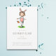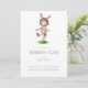 Um convite à Páscoa e à caça ao ovo, bonitinho e doce, com a ilustração de uma garotinha numa fantasia de coelho e na cesta de Páscoa. Ilustrada e projetada por Patricia Alvarez.
