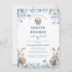 Páscoa Brunch e Ovo Fumar, Fumaça Azul, Convocação de Coelho Floral Azul. Páscoa Elegante domingo Brunch convite com flores e cachimbos selvagens azuis pastel e cor d'água e cestos de ovos de Páscoa. Convite para modelo editável.
