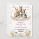 Bonito convite de aquarela no estilo. Tema: Festa de Chá do Jardim Páscoa. Ocasião: comemoração da Páscoa, festa de aniversário. Estilo: Bonito, Elegante, Whimsical. Cores: cor rosa, verde e outras cores primavera. . Gráficos: coelhos de aquarela, pote de chá, xícaras de chá, fitas, flores, borboletas.