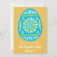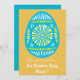 Perfeito para uma festa de Páscoa divertida! Um convite de na moda para uma festa de Páscoa para adultos ou crianças ou celebração da Caça de Ovos na Páscoa. Este convite de festas legal apresenta um ovo gigante de Páscoa padronizado em azul e amarelo e texto e cor de fundo totalmente personalizáveis.