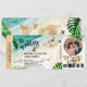 Destino de Ilha Tropical Bilhete de Embarque de Casamento na Praia Passagem Aérea com Coração e Ícone de Avião com Folhas Tropicais. Adicione sua foto