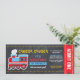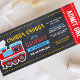 Celebre sua Festa de aniversário com nosso Convite de festas de quadro-negro azul do trem. Design apresenta uma ilustração vermelha do trem azul com "chugga chugga" em texto de estilo divertido no fundo preto do quadro negro em um estilo admita um passe de embarque. Este convite para ingressos escolares é perfeito para a primeira festa de aniversário, chá de fraldas e muito mais do seu filho.