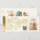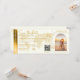 Convite de passagem de embarque de casamento com um mapa mundial de destino dourado elegante, bússola, avião, um modelo de convite de casamento personalizado e uma seção de rsvp.