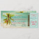 Cartão de embarque de PixDezines para um casamento de destino. Passagem para o paraíso com palmeira pendurada. Basta clicar no botão "personalizar" para editar.
