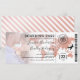 Bilhete de casamento de passagem de embarque com foto do casal feliz, mapa mundial de destino em folha de ouro rosa falso, bússola, avião e modelo de casamento personalizado.