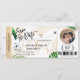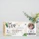 Passagem de Embarque para Casamento na Praia com Coração e Ícone de Avião com Folhas Tropicais Salve a Data com sua foto