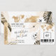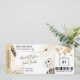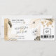 Passagem de Embarque para Casamento na Praia Bilhete de Passagem Aérea com Coração e Ícone de Avião com Folhas Tropicais