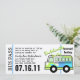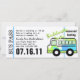 Este ônibus está a caminho de uma noite de festa inesquecível. Crie seu próprio itinerário neste passe de ônibus, mude a cor do bilhete também. Personalizável para qualquer evento.