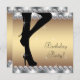 Calçados de salto alto legante e diamantes, convite de festa de aniversário para mulheres. Este belo convite de aniversário prateado e dourado é facilmente personalizado para o seu evento, adicionando detalhes do seu evento, estilo de fonte, tamanho de fonte e cor e texto. Note - este design é impresso sem joias reais, arcos, levantados, gravados ou acrescentados peças ou peças.