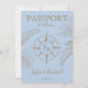 Planejar casamento no destino romântico? Convide seus convidados com este belo passaporte Convite com um monograma de bússola em um fundo azul empoeirado