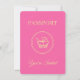 Convite para passaporte com tema de viagem em cor-de-rosa brilhante para um desejo de viajar, uma viagem, bem-vindo ao mundo, aventura ou chá de bebê de tema internacional ou polvilhar. –– CADA PARTE do modelo pode ser alterada, incluindo a cor do emblema, texto e cor de fundo da frente e de trás para combinar perfeitamente com o tema do seu passaporte! –– Nossa loja e coleção de designer também tem itens de decoração de festa coordenados! Design criado para imitar nosso convite original para chá de bebê ©Paper Grape Destinations desde 2008.