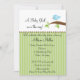 Comece seu evento fora do direito com nosso convite bonito do chá de fraldas do menino que caracteriza um pássaro de bebê azul bonito que senta-se em um ramo de árvore ajustado em um fundo verde da listra. Convite na moda perfeito para um chá de fraldas do bebé! Apenas personalize com sua informação e você é todo ajusta-se para ir! Artigos de harmonização que incluem o porte postal do chá de fraldas, etiquetas do favor, obrigado carda-o & agradecem-n que a as etiquetas estão igualmente disponíveis em nossa loja. estúdio do ©cocoa