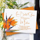 Luau temático, modelo chá de panela com flores laranja-de-paraíso brilhante design. Papel horizontal com flores na borda esquerda. Texto é um roteiro moderno com grandes letras para o título e o nome da noiva. Texto laranja sobre papel branco, com muitas opções para atualizar o papel. Além disso, escolha a opção de download para compartilhar on-line ou impressão sua.