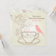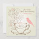 Pássaro Silhueta Rosa Bonito Personalizado Sentado em um Teacup com Chá de fraldas Flores Convide para Meninas em Rosa e Castanho.