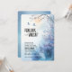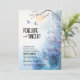 A design apresenta uma imagem aquática de uma paisagem romântica com duas aves amadoras e flores de cereja em um fundo azul-aquarela e bege. Este convite completo inclui um código QR na parte de trás, que você pode personalizar para direcionar seus convidados para o site do seu casamento para mais detalhes e RSVP. O convite "Love bird and cherry blossom" pode ser adquirido em versão impressa ou digital usada em dispositivos eletrônicos. Este modelo está disponível em formato impresso e também como convite eletrônico, como download instantâneo. A redação é perfeitamente editável. Você pode alterar tamanho, cor, fonte, posição na página.