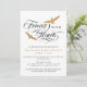 Elegante convite para funeral sem foto com pássaros em chamas impressos em faux gold glitter framing Forever em nossos Corações em lindas fontes irrisórias.