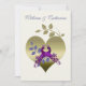 O convite elegante do casamento feito no roxo e no ouro, gráficos bonitos da exibição de dois pavões roxos ajustou-se dentro de um coração do ouro, na parte dianteira do convite. O texto é inteiramente customizável serir suas necessidades, cor da mudança, estilo de pia batismal, tamanhos, mesmo supressão de adiciona linhas.