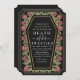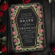 Está na hora de despedir-se dos anos 20 e abraçar os anos 30 no estilo! Estes convites para aniversário de 30 anos apresentam um design de caixão elegante sobre rosas e espinhos com o texto 'Morte aos Vinte Anos' — perfeito para uma celebração escura e glamourosa! Faça o pedido agora e torne este marco inesquecível! Note que o ouro do convite NÃO é uma folha real e é impresso em cores planas.