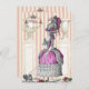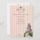 Eu coloquei uma bela placa de moda do século 18 de uma boa mulher levando seu pequeno cachorro para passear com urnas, plintos, uma dispersão de íris, rosas em cheio e lavanda em um fundo rosa pálido e listrado com creme