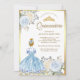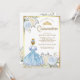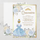 Convites Pastel Azul, Vestido Floral Princesa Dourada Quinc