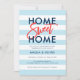 Convite de festas de aquecimento doméstico com as palavras "Home Sweet Home" em azul sans serif e laranja trendy script tudo em um fundo azul e branco pastel. A placa tem uma cor azul de trás. Veja aqui outros novos itens home https://www.zazzle.com/rosewoodandcitrus/new%20home?rf=238364477188679314 Personalize-o substituindo o texto do marcador de posição. Para obter mais opções, como alterar a fonte e seu tamanho/cor ou o espaçamento entre letras, clique no botão "Personalizar". *Observe que a Marca d'água do Zazzle que aparece na visualização de zoom NÃO aparecerá no produto impresso final. © Rosewood e Citrus