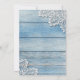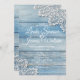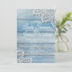 Efeito bonito de renda branca contra painéis de madeira azul. Os convites e as placas estão disponíveis em uma seleção de opções de forma (bordas arredondadas, redimensionadas etc.) e em uma seleção de texturas de papel. Os estilos de fonte, cor e tamanho são personalizáveis. Você pode encontrar outros designs com muitos produtos de coordenação em nossa loja, incluindo convites, salvar a data e as placas rsvp, obrigado que você marcar e muito mais.