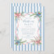 A charming pastel Christmas invitation featuring watercolor candy canes wrapped in pink and blue ribbons with delicate holiday florals. The soft blue striped background adds a cozy, vintage touch, perfect for festive gatherings or whimsical winter celebrations. A sweet and stylish take on traditional holiday cheer.