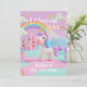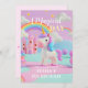 Convide convidados para um mundo de conto de fadas de castelos e unicórnios com este adorável convite de aniversário com nuvens macios e cores sonhadoras. (Trabalho de arte Gerado por AI)