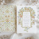Este encantador convite para o casamento de Rococo é adorado com delicadas flores de pastel dispostas em um quadro de ouro de ornamentado. A design apresenta uma elegante cascata de pêssego pintado à mão, natas-borboletas e flores-do-mato, entretecidas com folhas verdes e curvas botânicas graciosas. O efeito de aquarela suave do quadro traz uma atmosfera romântica e cheia de luz ao convite. O verso é ilustrado com um padrão floral intrincado que lembra os papéis de parede de palácio ou os têxteis antigos. Simétrica e suave, usa os antigos motivos franceses e elementos florais naturais para criar um eterno, refinado estético. Ideal para casamentos de jardim, cerimônias de primavera ou verão, e casais desenhados para charme histórico e detalhes artísticos.