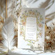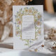 Este encantador convite para o casamento de Rococo é adorado com delicadas flores de pastel dispostas em um quadro de ouro de ornamentado. A design apresenta uma elegante cascata de pêssego pintado à mão, natas-borboletas e flores-do-mato, entretecidas com folhas verdes e curvas botânicas graciosas. O efeito de aquarela suave do quadro traz uma atmosfera romântica e cheia de luz ao convite. O verso é ilustrado com um padrão floral intrincado que lembra os papéis de parede de palácio ou os têxteis antigos. Simétrica e suave, usa os antigos motivos franceses e elementos florais naturais para criar um eterno, refinado estético. Ideal para casamentos de jardim, cerimônias de primavera ou verão, e casais desenhados para charme histórico e detalhes artísticos.