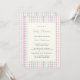Celebre o seu pequeno com este Convite para Chá de fraldas Pastel Gingham, com um design lúdico, mas moderno, em tons de púrpura, rosa, azul e amarelo. O padrão alegre de gingham estabelece um tom reluzente, fazer-o um ajustado perfeito para um chá de fraldas de jardim, celebração de primavera ou chá de fraldas de verão. Este convite neutro por sexo é totalmente personalizável, permitindo que você personalize o texto e ajuste as cores para se adequar ao seu evento. Bonita, divertida e refrescante moderna — é uma maneira encantadora de convidar pessoas amadas para o seu dia especial.
