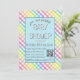 Convites Pastel Gingham Rainbow Baby Shower Blue