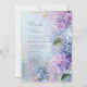 I have envisioned a celebration of soft, ethereal romance with this dreamy botanical composition. This design features lush clusters of lavender and periwinkle hydrangea that appear to float within a misty watercolor wash of violet and sky blue. A sophisticated thin gold frame provides a structured, high-end anchor for the organic blossoms, while delicate golden sprig accents and soft green leaves add a touch of whimsical garden magic. Imagine this atmospheric scenery as the romantic introduction to your whimsical spring wedding suite. It is the premier choice for a garden ceremony, a shabby chic reception, or an upscale outdoor summer event. To truly draw your guests into this tranquil vibe, I suggest printing this on heavyweight pearl shimmer cardstock to emphasize the luminous quality of the watercolor background. Pair it with a lavender envelope and a gold wax seal—it’s not just a wedding detail; it’s a curated heirloom that promises your guests a day of soft enchantment and floral beauty.