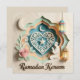 This greeting card is truly special for its craftsmanship aesthetic, mimicking a beautiful, multi-layered paper-cut design. The intricate heart and floral motifs, paired with the soft pastel colors, give it a tender and spiritual feel. Incorporating the praying figure and lanterns, it serves as a highly decorative and meaningful way to wish someone "Ramadan Kareem".