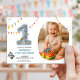 Adorable pastel racetrack shaped as number one with colorful cars and festive bunting. A sweet watercolor design perfect for a baby boy’s first birthday celebration.