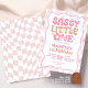 Pastel Retro Rainbow Sassy Little Um Aniversário, Convite Para Aniversário de criança Retroativo Wavy, Convite Para primeiro aniversario Retroativo Do Arco Coquette, Convite Para primeiro aniversario Retro Wavy Do Pastel Cor-De-Rosa