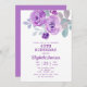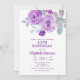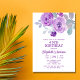 Honra uma mulher especial com este Convite de aniversário elegante e feminino. Este elegante design apresenta flores rosa púrpuras de aquarela com folhas de cinza macia. Cada texto é personalizável para suas necessidades.
