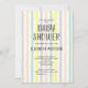 Personalize esses convites de chás neutros em termos de gênero, com faixas amarelas, lavandas, rosa, azuis e brancas e pontos de confetti amarelos. CORRESPONDENDO a itens na nossa loja.