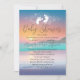 Tropical debaixo do mar praia oceano Boy ou Girl Chá de fraldas Invitation apresenta lindas cores pastel elegantes do pôr do sol na praia. As cores azul-turquesa, púrpura e laranja sunset ombre criam uma espantosa mistura de tons tropicais para um tema de praia, oceano, cruzeiro ou chá de fraldas do sol. Maravilhosa ideia de planejar um chá de praia do paraíso em um resort ou sob o tema do mar com esta adorável design. Silhueta de montanha, sol nascente ao anoitecer, com ondas suaves e areia de praia na costa oceânica, perfeito para um destino, ilha, evento marítimo do paraíso tropical e costeiro. Compartilhe o seu haii costeiro, califórnia, ilha caribe ou tema tropical.